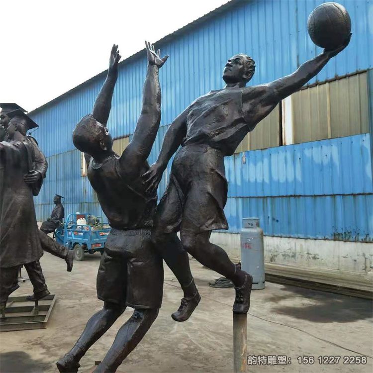 玻璃钢打篮球雕塑造型十分生动,观众不禁深受感动,仿佛能听见篮球在板框上有点回音的落地声,看到球员们在场上飞奔。这座体育运动主题雕塑不仅是一种文艺创作,更是一种对运动精神的尊重和赞美,让人们在观赏后思索运动和生活的关系。打蓝球不仅是一项运动,更是一种生活态度,一种追求健康和幸福的方式。不论是在球场上飞奔、投球,或是与队友紧密配合,都能给人带来无尽快乐和满足感,在球场上飞奔,大汗淋漓,同时身心也获得了全面的放松。在球场上,人们可以释放压力,放飞心情,享受追逐梦想的乐趣。